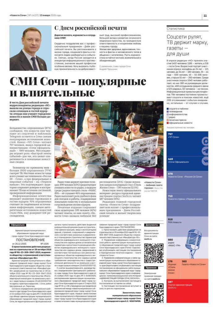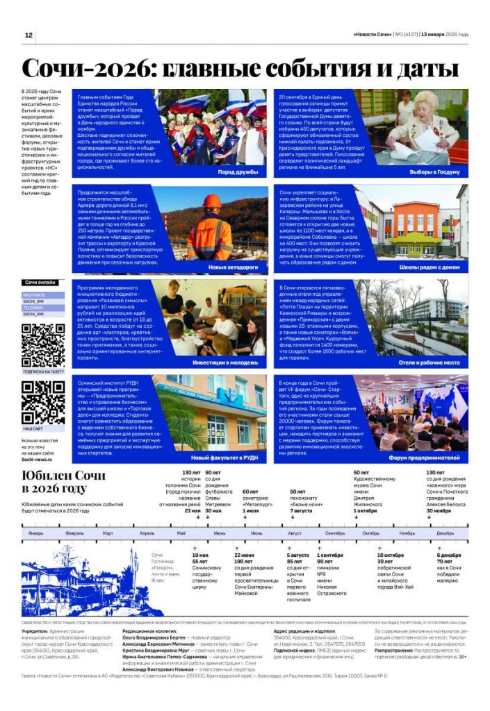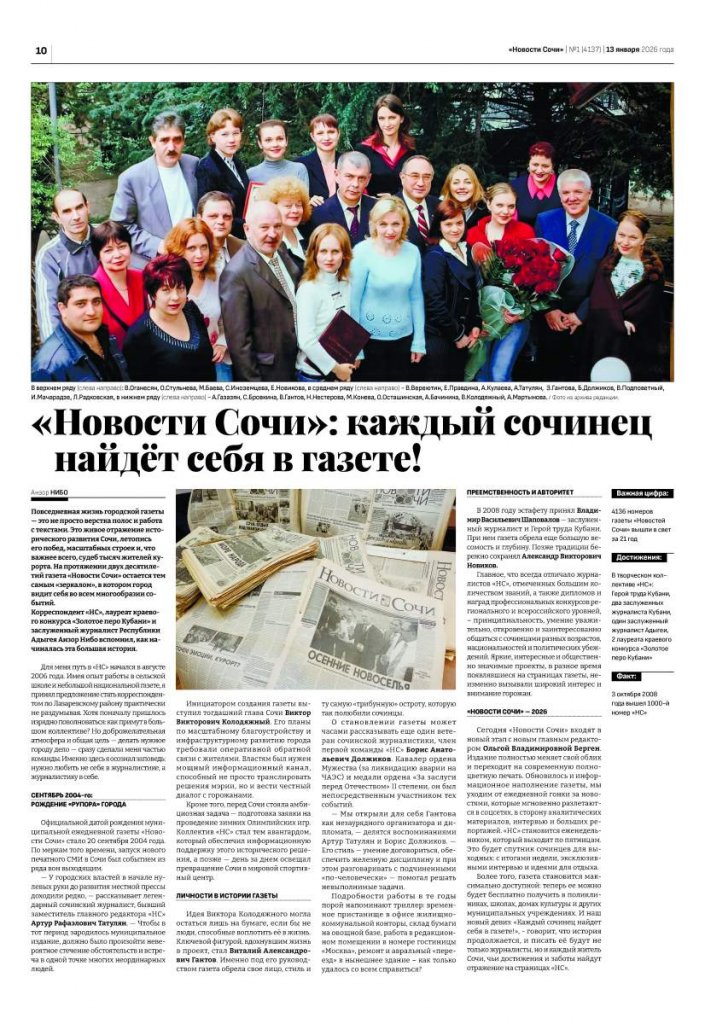 Повседневная жизнь городской газеты — это не просто верстка полос и работа с текстами. Это живое отражение исторического развития Сочи, летопись его побед, масштабных строек и, что важнее всего, судеб тысяч жителей курорта. На протяжении двух десятилетий газета «Новости Сочи» остаётся тем самым «зеркалом», в котором город видит себя во всём многообразии событий.